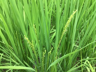 鈴木敏朗さんのお力添えのおかげで、今年も稲が順調に育っています。穂が出てきました。実りの秋が楽しみです。夏休み期間中は、ライサーズの生徒を中心に稲の観察が継続される予定です。