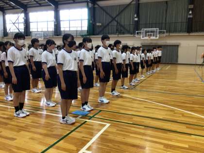 教室を出る時から無言で整列をし、体育館まで無言で移動する姿から、夏休み前の大切な集会に参加しようとする気持ちが伝わってきました。