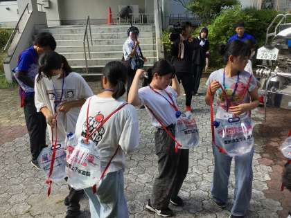 続いての活動は、3グループに分かれての防災体験です。