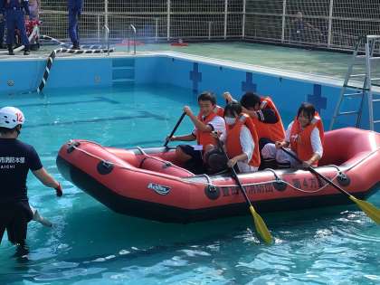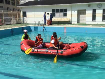 乗組員4名で息を揃えて漕がないと、上手く前進しません。