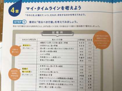 「マイ・タイムライン」とは、万が一に備えて、いつ、だれが、何をするのかを時系列でまとめたもののことを言います。初めに、作成の仕方を講師の方から説明していただきました。