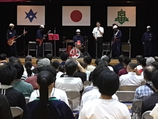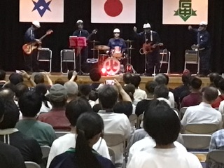 消防団ロッカーズのライブの様子です。ご来賓もみえ、花を添えてくださいました。たくさんの観客が集まりました。なかでも、昨年度の卒業生が応援に駆けつけてくれ、大いに盛り上げてくれました。