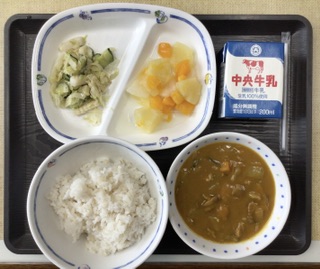 9/10 今日の給食 公開日 2024/09/10 更新日 2024/09/10 各学年から 今日の献立は、「たべまるのおすすめ」で、麦ごはん、夏野菜のカレーライス、イカサラダ、梨ポンチ、牛乳、でした。エネルギー:887kcal