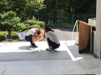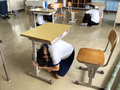 訓練の事前予告はせず、実際の場面を想定した避難訓練を実施しました。放送を聞いた生徒は、自分で考えて安全を確保し、身を守る行動をとることができました。