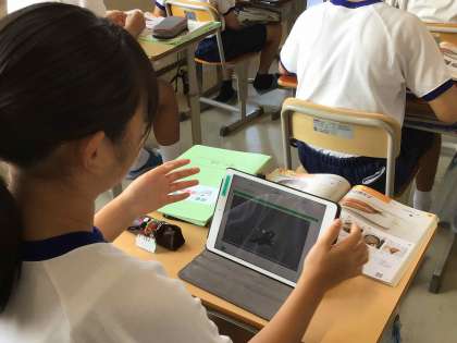 2年生の家庭科では、10月に調理実習を計画しています。最初に、イワシの手開きをする予定です。学習用タブレットで手順を確認しました。