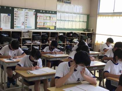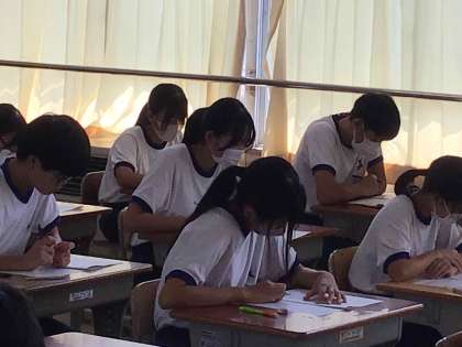 テストに向かう真剣な表情の生徒たちです。土日にしっかりと勉強してきた成果が、きっと発揮されていることでしょう。