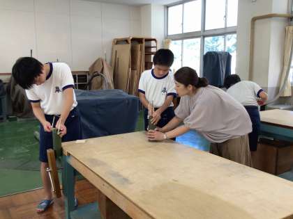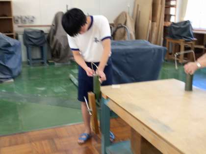 3・4組では、ふれあいまつりで販売する竹製品作りを進めています。販売準備を通して、コミュニケーション能力や人間関係の形成、身体の動きについて、それぞれの生徒に必要な力を育成しています。