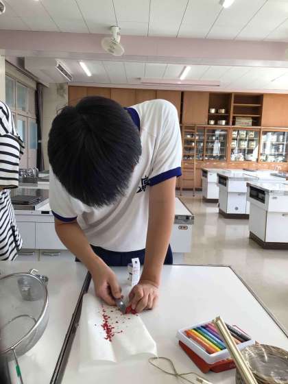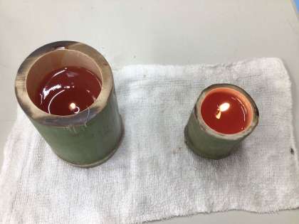 3・4組で進めているふれあいまつりで販売を目指したアロマキャンドルの試作品ができました。竹の大きさや、芯の素材等、よりよい品になるように改善したいという意欲が高まっています。