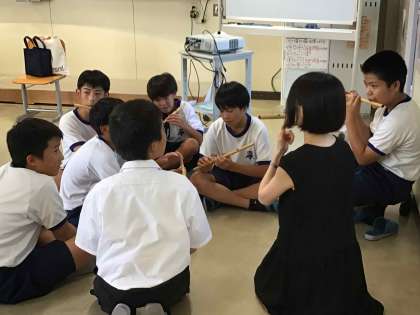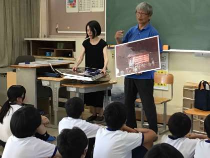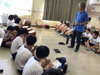 水神囃子は、講師の中根さんからお祭りでお囃子が演奏されていた頃の写真を見せていただきました。当時の様子を思い浮かべながら、練習をしました。