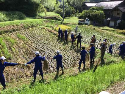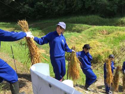 9月17日(火)、全校生徒で稲刈りが行われました。