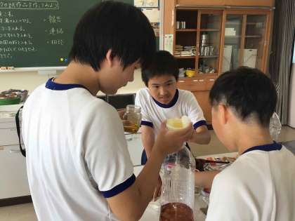 ふれあいまつりに向けてアロマキャンドルの試作品を作っています。作業の中で、報告、連絡、相談することを大切にし、生活に必要なコミュニケーション能力を伸ばすことを心掛けています。