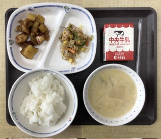 10/30 今日の給食 公開日 2024/10/30 更新日 2024/10/30 各学年から 今日の献立は、ごはん、豆乳のバランス味噌汁、りっちゃんの元気サラダ、レバーとサツマイモの甘辛煮、牛乳、でした。エネルギー:850kcal