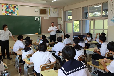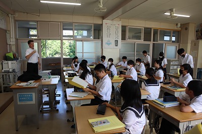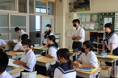 1年生の英語科は、ALTの先生を交えて「あなたの好きなもの」についての会話を行っていました。ジョン先生の好きなアニメは「ドラゴンボール」でした。