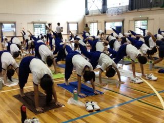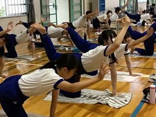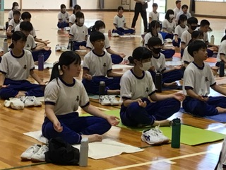 実際にヨガの体験もしました。呼吸を意識しながら、というのはなかなか難しいようで、ポージングの度にうめき声が聞こえてきましたが、とても楽しそうな様子でした。ご家庭でもぜひ挑戦してみてください。