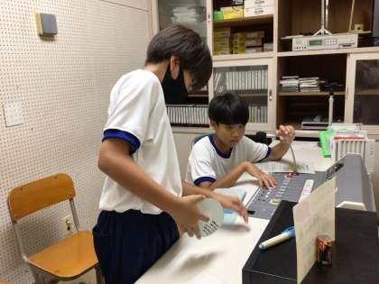 2年生は、配膳にかかる時間を短くできるように工夫して活動しており、給食を食べ始める時刻がいちばん早いです。給食時には、委員会の活動も行われています。