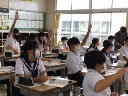 1年生の道徳では、教科書資料をもとに、自分の体験と重ねながら人とのかかわり方について考えました。互いの感じ方の違いに気づき、認め合う気持ちについて考えを深めました。