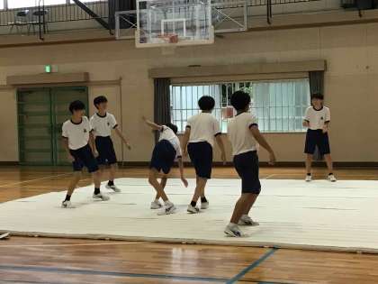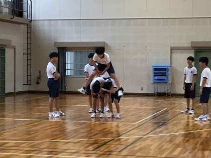 グループで相談しながら創作ダンスの発表に向けて練習をしています。1・2年生のマット運動やダンスで身に付けた技を生かしながら、工夫している様子が伝わってきます。