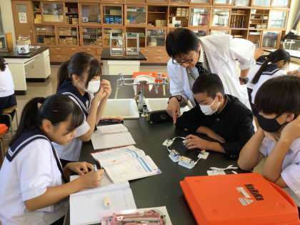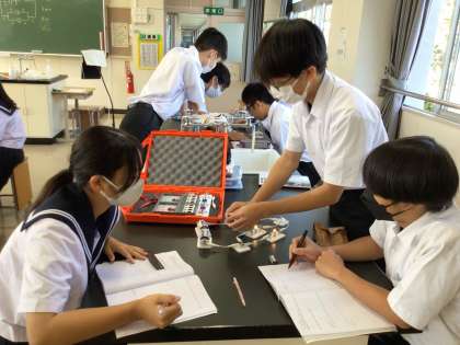 2年生の理科では、回路の電圧について実験を通して学びました。直列回路と並列回路の電圧を測定し、予想とは違う結果に驚きの声が上がっていました。