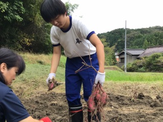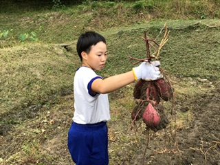 3・4組の生徒が、鈴木敏朗さんにお力添えいただき育てていたさつまいもを収穫しました。予想よりも大きく育っていたさつまいもをたくさん掘り起こし、協力して運びました。どう調理して味わうか、楽しみにしています。