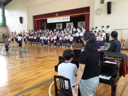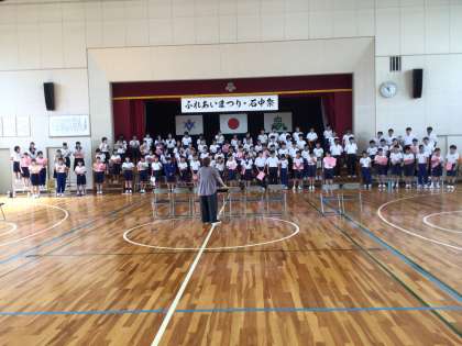 全校生徒が一同に会して、体育館で合唱練習を行いました。