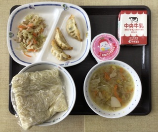 11/12 今日の給食 公開日 2024/11/12 更新日 2024/11/12 各学年から 今日の献立は、中華麺、塩ラーメン、中華和え、揚げ餃子、豆乳パンナコッタ、牛乳、でした。エネルギー:805kcal