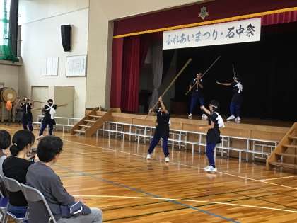 水神囃子、棒の手、石野歌舞伎、勘八太鼓の4つの郷土芸能の発表。