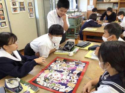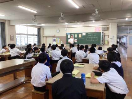 10月30日の英語科の授業は、ALTのジョン先生に指導していただきました。1年生は1・2組合同で、ハロウィーンを題材とした英語のゲームを行いました。生徒は、楽しみながら英語を使う活動に参加していました。