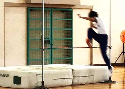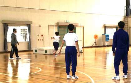 体育科の授業では、陸上競技に取り組んでいます。今日は走高跳に挑戦しました。助走の方向や歩幅を調整しながら、腕を使って体を上げる感覚や足を振り上げるタイミングを何度も試していました。