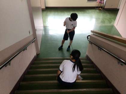 こちらは、廊下、階段、トイレの清掃の様子です。