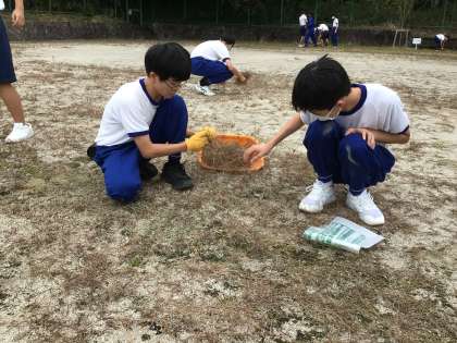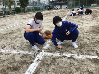 昨年度優勝の2年生は、連覇を狙おうと懸命に草取りをしていました。
