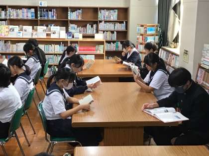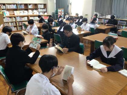 6日(水)の朝学習の時間、2年生は図書館利用を行いました。