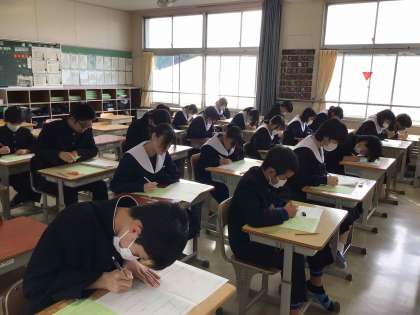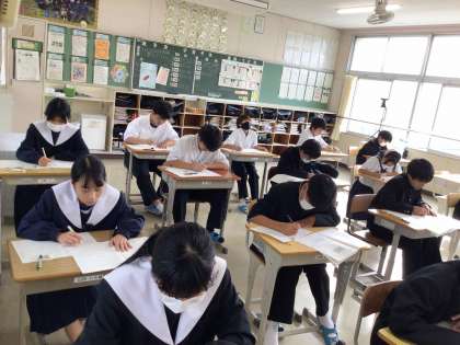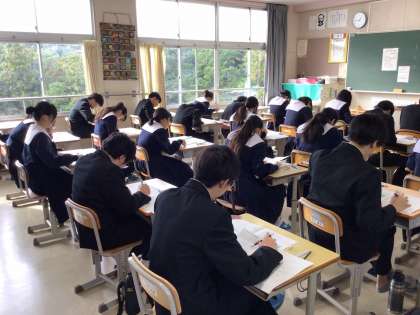 3年生は11月14日から、1・2年生は15日から後期の中間テストが実施されています。3年生は休み時間にもテスト勉強に取り組む姿があり、進路選択への思いの強さを感じます。学校は、静かで緊張感のある空気が流れています。
