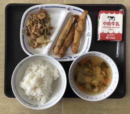 12/3 今日の給食 公開日 2024/12/03 更新日 2024/12/03 各学年から 今日の献立は、ごはん、ふだま汁、切干し大根のソース炒め、シシャモフライ、牛乳、でした。エネルギー:798kcal