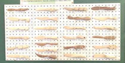 2年生の美術で制作した「やさしいバターナイフ」が西側階段の踊り場に掲示されています。木材を加工し、使いやすいデザインを考えて作られたものです。個別懇談会の折に、ぜひご覧ください。