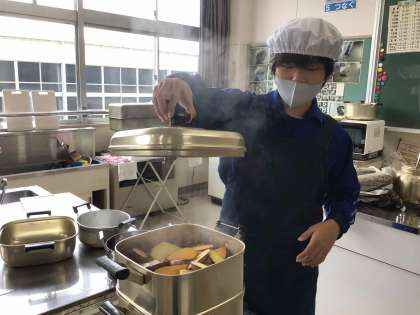 3・4組では、学校で育てて収穫したサツマイモを使ってスイートポテトづくりをしました。やけどをしないように気を付けながら、サツマイモをふかしました。