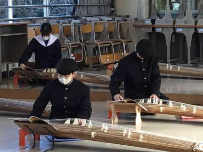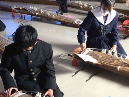 音楽の学習では、箏の演奏に取り組んでます。1年生は爪を固定することに苦労していましたが、「さくらさくら」を曲想をつけながら演奏できるようになってきました。