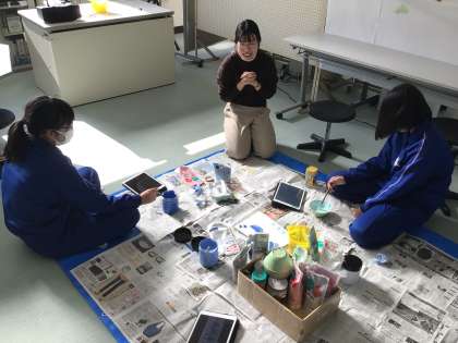 そのスローガンを横断幕にするために、代表生徒がせっせと作成してくれています。