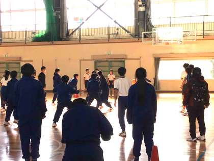1年生は、冬休みを前に自分たちの生活を見直す凡事徹底キャンペーンを実施し、目標を達成して気持ちよく新年を迎えられそうです。達成した喜びを全員で共有するために、冬休み前の登校最終日に、レクリエーションを楽しみました。