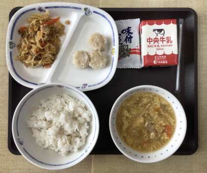 1/20 今日の給食 公開日 2025/01/20 更新日 2025/01/20 各学年から 今日の献立は、麦ごはん、たまごスープ、キムチ炒飯、エビ焼売、乾燥小魚、牛乳、でした。エネルギー:838kcal