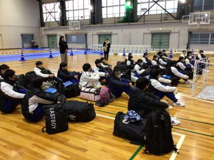 7時前の体育館で健康観察を済ませ、出発式を行いました。心配していた高速道路の通行止めも解除されました。安全に気をつけ、充実した2泊3日を過ごしてきます。