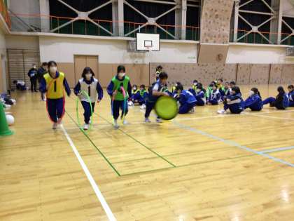 夕食後、体育館でレクリエーションを楽しんでいます。係の生徒が工夫して考えた活動内容で、笑顔がはじけています。