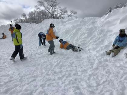 顔から雪に倒れたり、雪合戦をしたり、友達と雪遊びをめいっぱい楽しみました。