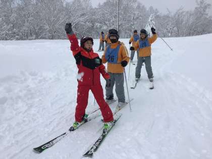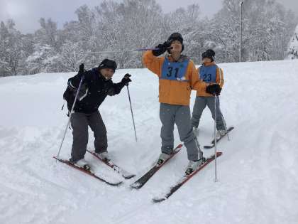 午後のスキー研修が始まりました。どの班もコースに出て行きました。もう、板を持って坂道を登らなくてもよいので喜んで出発しました。