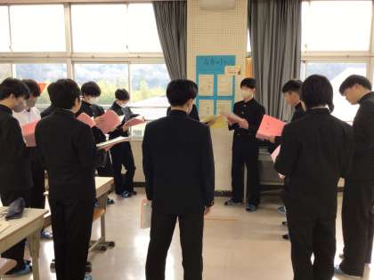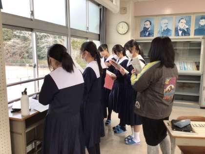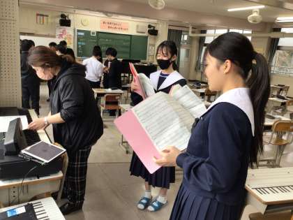 3年生の音楽は、卒業式で歌う「証」の音とりをパートごとに分かれて行っています。