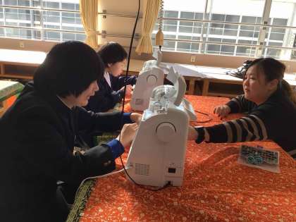 3・4組の家庭科では、ミシンを使って学校で活用できる雑巾を丁寧に縫い上げました。端の縫い目が布から外れないように、慎重に作業を進めることができるようになってきました。