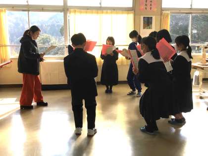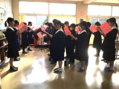 卒業を祝う会に向けて、1・2年生が準備を進めています。1年生は、会で披露する合唱の練習に取り組んでいます。パートリーダーを中心に、生徒の力で練習が進むようにしています。