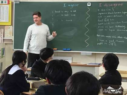 ALTのジョン先生との英語授業の様子です。英語を使ってコミュニケーションを取り、思考する場面が設けられています。