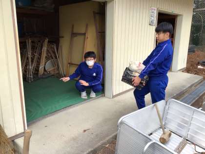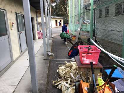 部室や石灰庫、農具庫など、日ごろ掃除できない場所をきれいに片付ける姿もありました。1回の活動で終わるのではなく、自分たちで考えた計画が完了するまで活動する予定です。