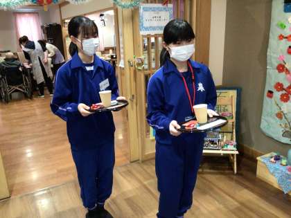 2月8日(土)、石野の里で「まったり和っかふぇ」が開催されました。8名の生徒がボランティアスタッフとして参加しました。