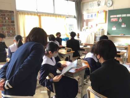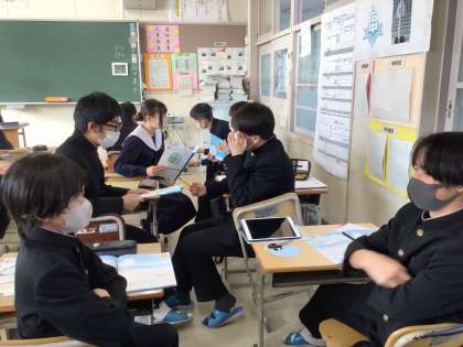 2年生は外部講師をお招きしてドリームマップ授業に取り組んでいます。自分自身について深く見つめ、自分の将来について考えていきます。まとめた内容を紹介し合う場面では、聞き合う生徒がみんな笑顔であったのが印象的でした。